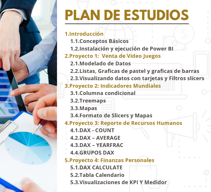 En este curso aprenderás a transformar datos en información valiosa mediante el uso práctico de Power BI. A través de proyectos reales, desarrollarás habilidades para importar, modelar y visualizar datos, creando dashboards interactivos y reportes dinámicos. Durante el curso, aprenderás a optimizar tus análisis con técnicas avanzadas de visualización y a compartir reportes para la toma de decisiones empresariales. Este enfoque te permitirá aplicar los conocimientos directamente a tus proyectos profesionales, potenciando tu capacidad para analizar y presentar información de manera efectiva.
